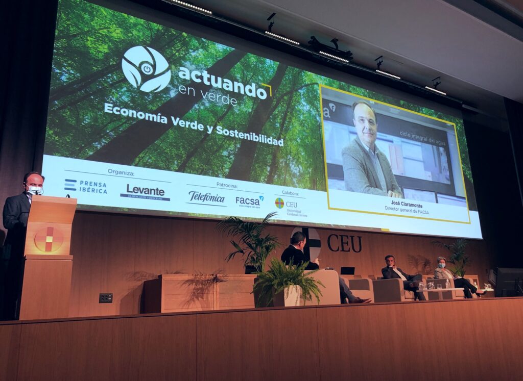 “Sin ciencia no hay futuro por lo que hay que seguir apostando por la investigación y la colaboración y pasar del modelo económico lineal al circular y a la sostenibilidad”. Así de contundente se mostró ayer José Claramonte, director general de FACSA, en su intervención durante la jornada “Actuando en verde” que tuvo lugar en el Paraninfo del CEU Cardenal Herrera de València.