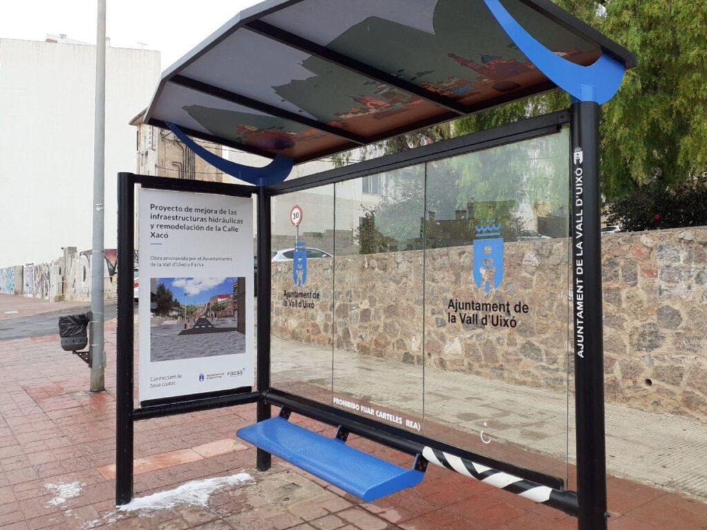 El Ayuntamiento de la Vall d’Uixó y la empresa concesionaria FACSA recurren a las infografías 3D para publicitar, por medio de las marquesinas, el Proyecto de Renovación de las Infraestructuras Hidráulicas y de mejora viaria de la calle Xacó.