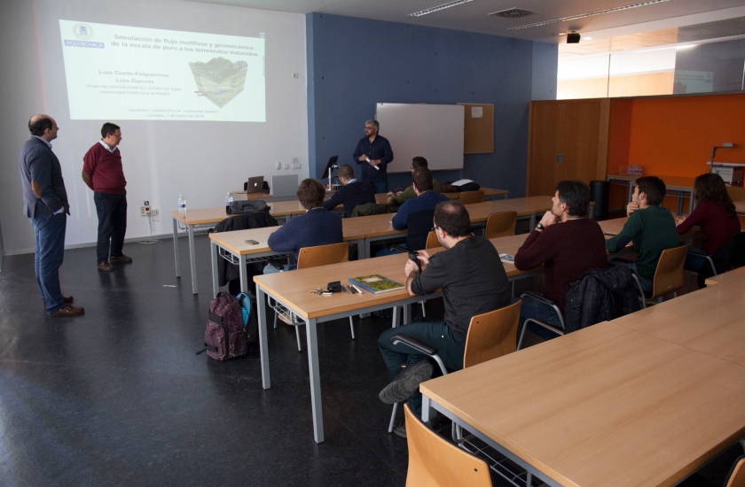 El Catedrático Luis Garrote y el profesor Luis Cueto-Felguerosa de la Universidad Politécnica de Madrid han impartido recientemente en la Universitat Jaume I una sesión en torno al modelado de fluidos en el interior de medios porosos, enmarcada en el ciclo ‘Jueves de Seminarios’ organizado por la Cátedra FACSA de Innovación en el Ciclo Integral del Agua de la Universitat Jaume I.